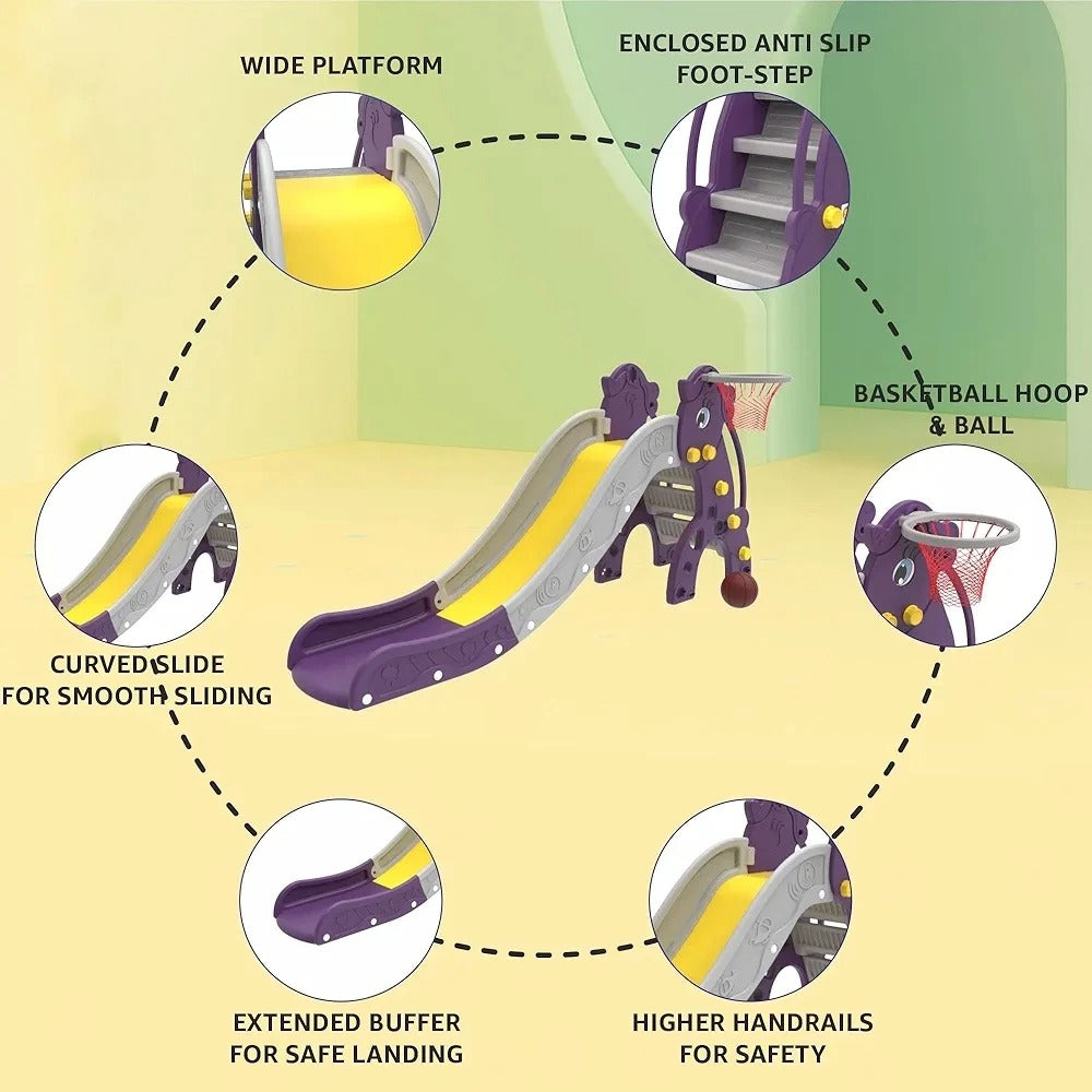 - Built-In Basketball Hoop + Ball - More than just a slide! Includes a mini basketball ring and ball to keep toddlers engaged and active while improving hand-eye coordination.